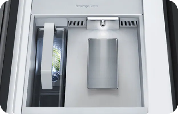 Discover cooling, storage and connectivity features available on Bespoke refrigerators. Enjoy flexible beverage and storage options with the Beverage Centre™, Dual Auto Ice Maker and FlexZone™. Family Hub™ allows you to see inside your fridge from your phone, manage family calendars, update grocery lists, stream music, and much more.