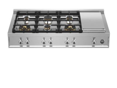48" Bertazzoni Gas Rangetop with 6 Brass Burner and Electric Griddle - PROF486GRTBXT
