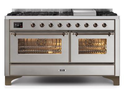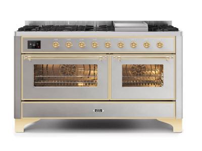 60" ILVE Majestic II Dual Fuel Natural Gas Range with Brass Trim in Stainless Steel - UM15FDNS3/SSG