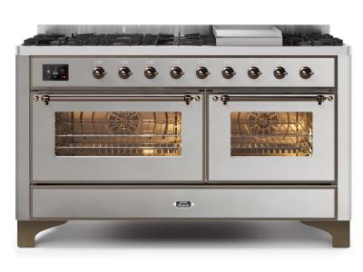 60" ILVE Majestic II Dual Fuel Natural Gas Freestanding Range With Bronze Trim In Stainless Steel -