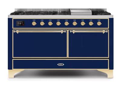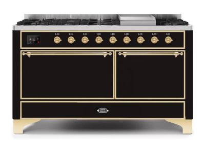 60" ILVE Majestic II Dual Fuel Liquid Propane Range with Brass Trim - UM15FDQNS3/MBG LP
