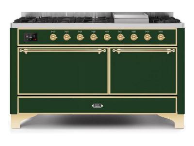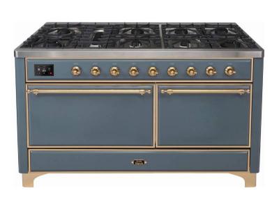 60" ILVE Majestic II Dual Fuel Natural Gas Range with Brass Trim - UM15FDQNS3/BGG NG