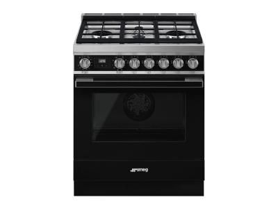 30" SMEG Freestanding Professional Dual Fuel Range in Black - CPF30UGMBL