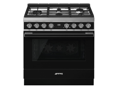 36" SMEG Cooker Portofino Freestanding Gas Range with 5 Burners in Black - CPF36UGGBL