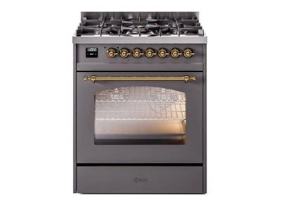 30" ILVE Nostalgie II Dual Fuel Freestanding Range with Brass Trim - UP30NMP/MBG LP