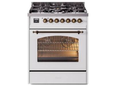 30" ILVE Nostalgie II Dual Fuel Natural Gas Freestanding Range in White with Bronze Trim - UP30NMP/W