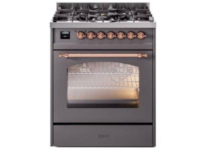 30" ILVE Nostalgie II Dual Fuel Natural Gas Freestanding Range in Matte Graphite with Copper Trim -