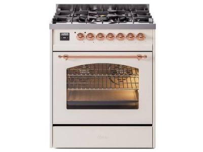 30" ILVE Nostalgie II Dual Fuel Natural Gas Freestanding Range in Antique White with Copper Trim - U
