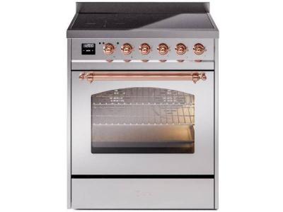 30" ILVE Nostalgie II Electric Freestanding Range in Stainless Steel with Copper Trim - UPI304NMP/SS