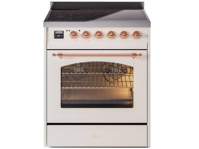 30" ILVE Nostalgie II Electric Freestanding Range in Antique White with Copper Trim - UPI304NMP/AWP