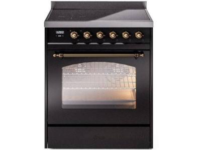30" ILVE Nostalgie II Electric Freestanding Range in Glossy Black with Bronze Trim - UPI304NMP/BKB