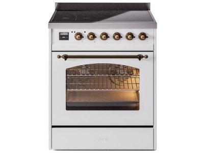 30" ILVE Nostalgie II Electric Freestanding Range in White with Brass Trim - UPI304NMP/WHG