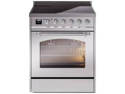 30" ILVE Nostalgie II Electric Freestanding Range in Stainless Steel with Chrome Trim - UPI304NMP/S
