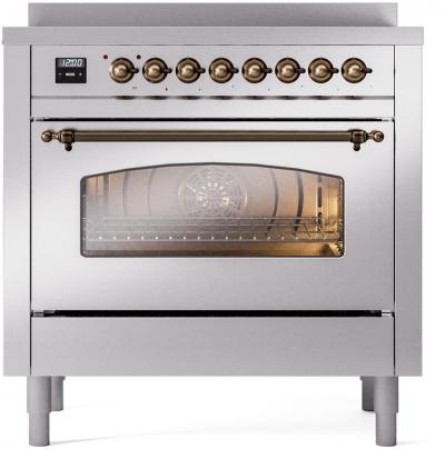 36" ILVE Nostalgie II Electric Freestanding Range in Stainless Steel with Bronze Trim - UPI366NMP/WH