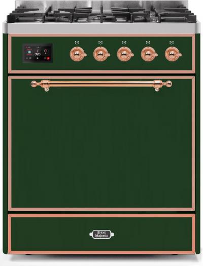 30" ILVE Majestic II Dual Fuel Freestanding Range in Emerald Green with Copper Trim - UM30DQNE3/EGP