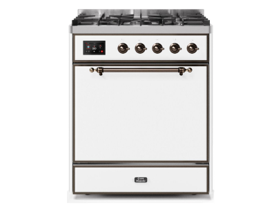 30" ILVE Majestic II Dual Fuel Freestanding Range in White with Bronze Trim - UM30DQNE3/WHB NG