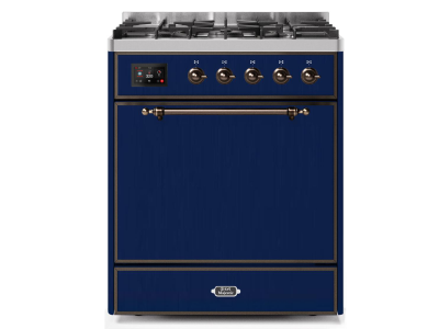 30" ILVE Majestic II Dual Fuel Freestanding Range in Blue with Bronze Trim - UM30DQNE3/MBB LP