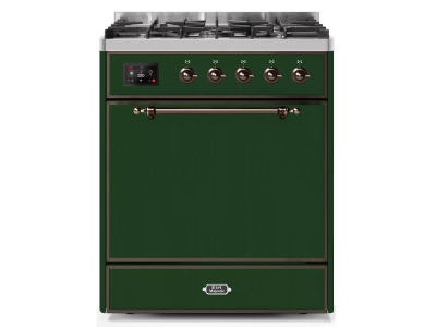 30" ILVE Majestic II Dual Fuel Freestanding Range in Emerald Green with Bronze Trim - UM30DQNE3/EGB