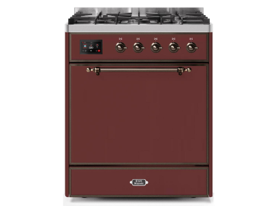 30" ILVE Majestic II Dual Fuel Freestanding Range in Burgundy with Bronze Trim - UM30DQNE3/BUB LP