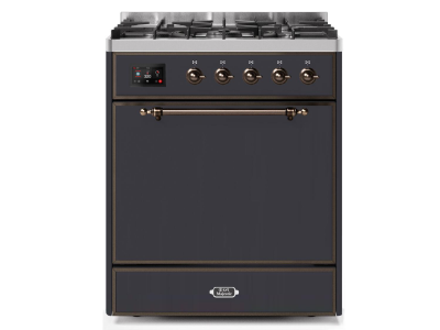 30" ILVE Majestic II Dual Fuel Freestanding Range in Matte Graphite with Bronze Trim - UM30DQNE3/MGB