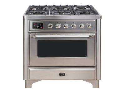 36" ILVE Majestic II Dual Fuel Natural Gas Freestanding Range with Chrome Trim in Stainless Steel -