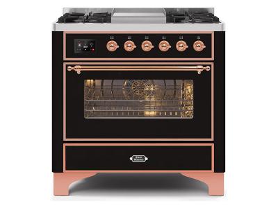 36" ILVE Majestic II Dual Fuel Range with Copper Trim in Glossy Black - UM09FDNS3BKPLP