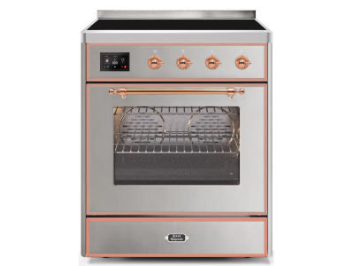 30" ILVE Majestic II Electric Freestanding Range with Copper Trim in Stainless Steel - UMI30NE3/SSP