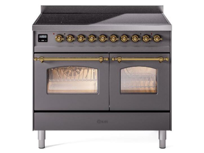 40" ILVE Nostalgie II Electric Freestanding Range in Matte Graphite with Brass Trim - UPDI406NMP/MGG