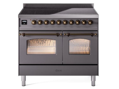 40" ILVE Nostalgie II Electric Freestanding Range in Matte Graphite with Bronze Trim - UPDI406NMP/MG