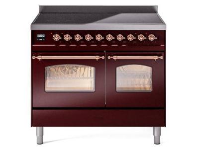 40" ILVE Nostalgie II Electric Freestanding Range in Burgundy with Copper Trim - UPDI406NMP/BUP