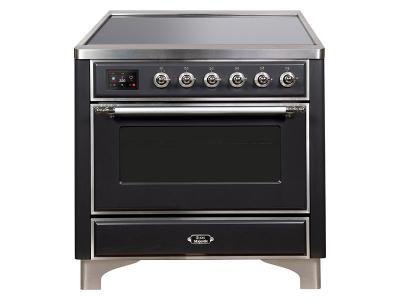 36" ILVE Majestic II Electric Range with Chrome Trim in Glossy Black - UMI09NS3BKC
