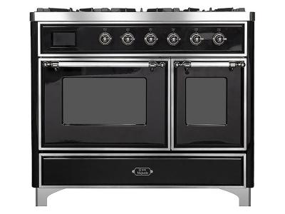 40" ILVE Majestic II Dual Fuel Range with Chrome Trim in Glossy black - UMD10FDNS3BKC-NG