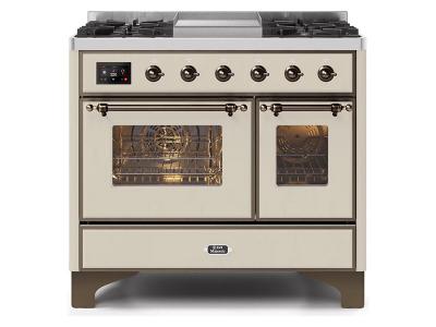 40" ILVE Majestic II Dual Fuel Range with Bronze Trim in Antique White - UMD10FDNS3AWB-NG
