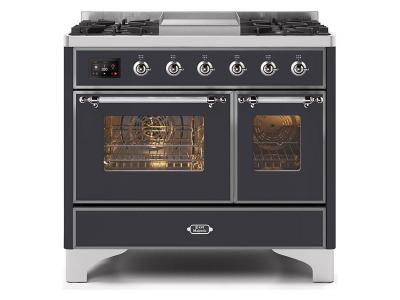 40" ILVE Majestic II Dual Fuel Range with Chrome Trim in Matte Graphite - UMD10FDNS3MGC-NG