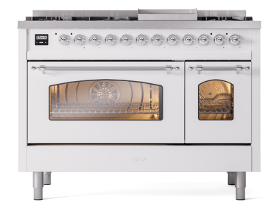 48" ILVE Nostalgie II Dual Fuel Natural Gas Freestanding Range in White with Chrome Trim - UP48FNMP/