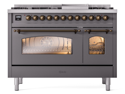 48" ILVE Nostalgie II Dual Fuel Natural Gas Freestanding Range in Matte Graphite with Bronze Trim -