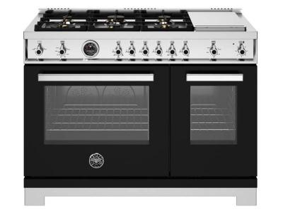 48" Bertazzoni All Gas Range with 6 Brass Burners and Griddle in Nero - PRO486BTFGMNET