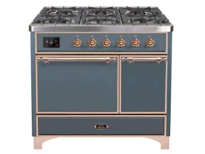 40" ILVE Majestic II Dual Fuel Natural Gas Freestanding Range with Copper in Blue Grey - UMD10FDQNS3