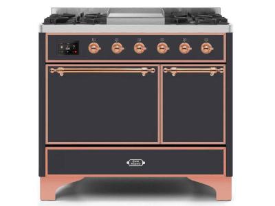 40" ILVE Majestic II Dual Fuel Natural Gas Freestanding Range with Copper in Matte Graphite - UMD10F