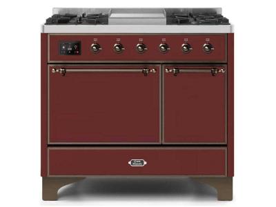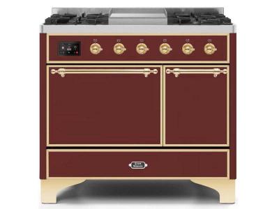 40" ILVE Majestic II Dual Fuel Natural Gas Range with Brass Trim in Burgundy - UMD10FDQNS3/BUG NG