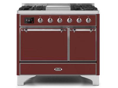 40" ILVE Majestic II Dual Fuel Natural Gas Freestanding Range with Chrome Trim in Burgundy - UMD10FD