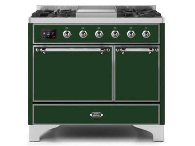 40" ILVE Majestic II Dual Fuel Natural Gas Freestanding Range with Chrome Trim in Emerald Green - UM