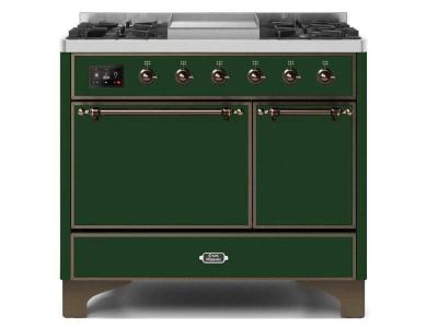 40" ILVE Majestic II Dual Fuel Natural Gas Freestanding Range with Bronze Trim in Emerald Green - UM
