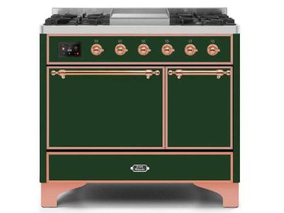 40" ILVE Majestic II Dual Fuel Natural Gas Freestanding Range with Copper in Emerald Green - UMD10FD