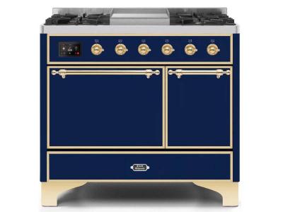 40" ILVE Majestic II Dual Fuel Natural Gas Range with Brass Trim in Blue - UMD10FDQNS3/MBG NG