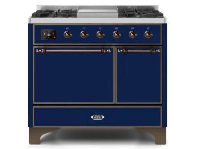 40" ILVE Majestic II Dual Fuel Natural Gas Freestanding Range with Bronze Trim in Blue - UMD10FDQNS3