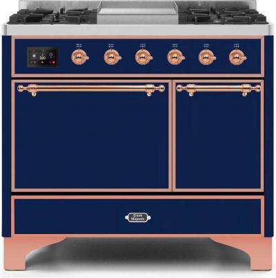 40" ILVE Majestic II Dual Fuel Natural Gas Freestanding Range with Copper in Blue - UMD10FDQNS3/MBP