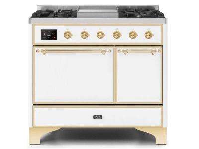 40" ILVE Majestic II Dual Fuel Natural Gas Range with Brass Trim in White - UMD10FDQNS3/WHG NG
