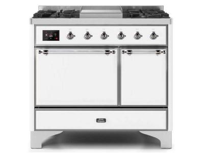 40" ILVE Majestic II Dual Fuel Natural Gas Freestanding Range with Chrome Trim in White - UMD10FDQNS