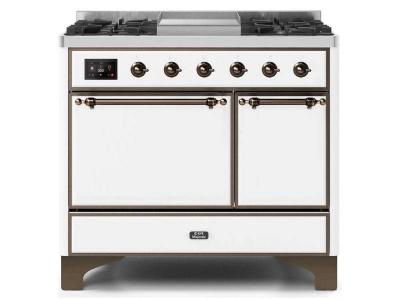 40" ILVE Majestic II Dual Fuel Natural Gas Freestanding Range with Bronze Trim in White - UMD10FDQNS